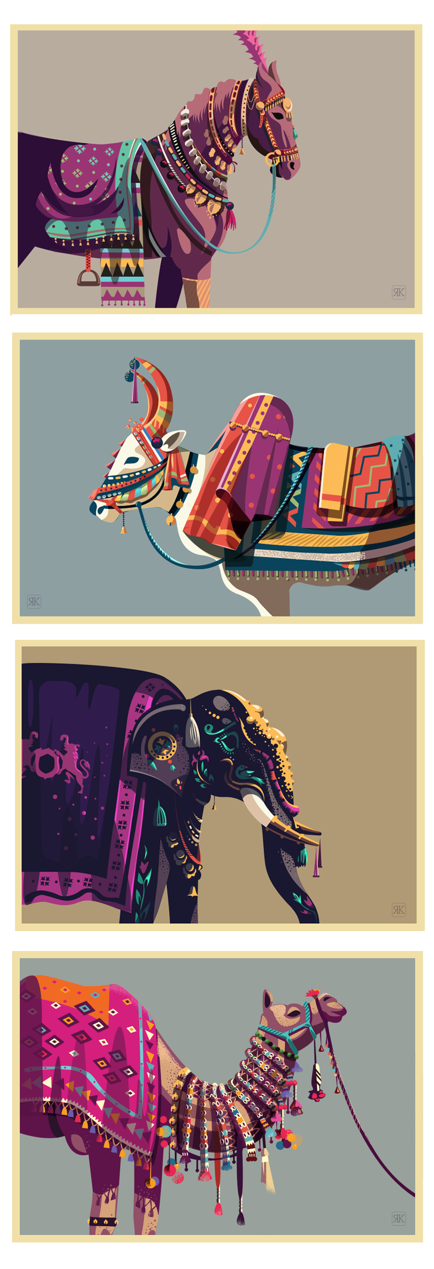 The use of colour is what stood out to me with this artist. The poster I'm creating is based around around an Indian play so I wanted something that used a lot of old and bright colours. The artist also uses a variety of textures in some of his work to help elevate the flat design. Even though his art is 2D the way he plays with light and shadows makes the illustration appear three dimensional. He uses gradients in some of his work which is something I want to try myself, sometimes gradients can make an image look cheap if it's used in the wrong way but in the right way it can really bring out a flat image.